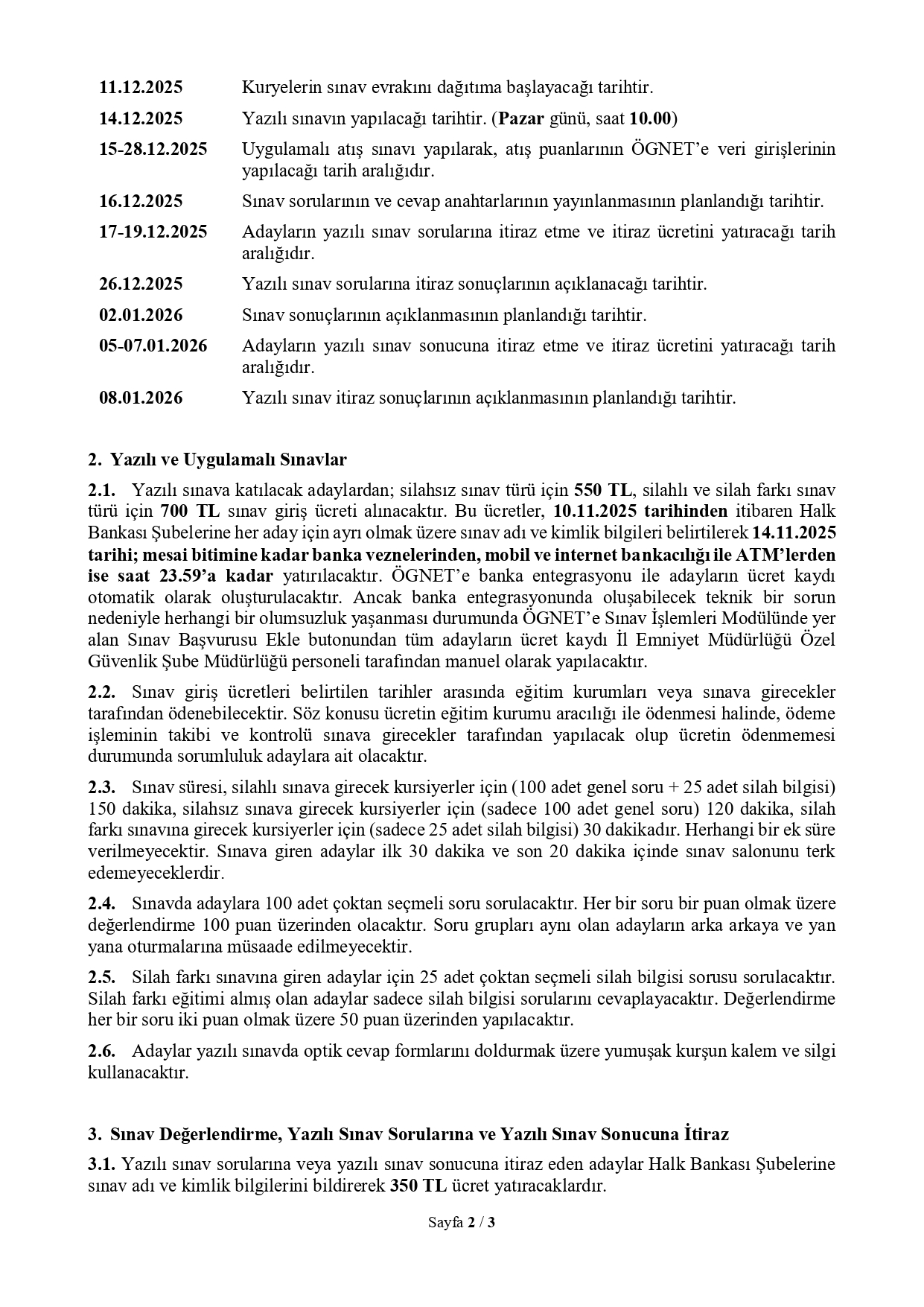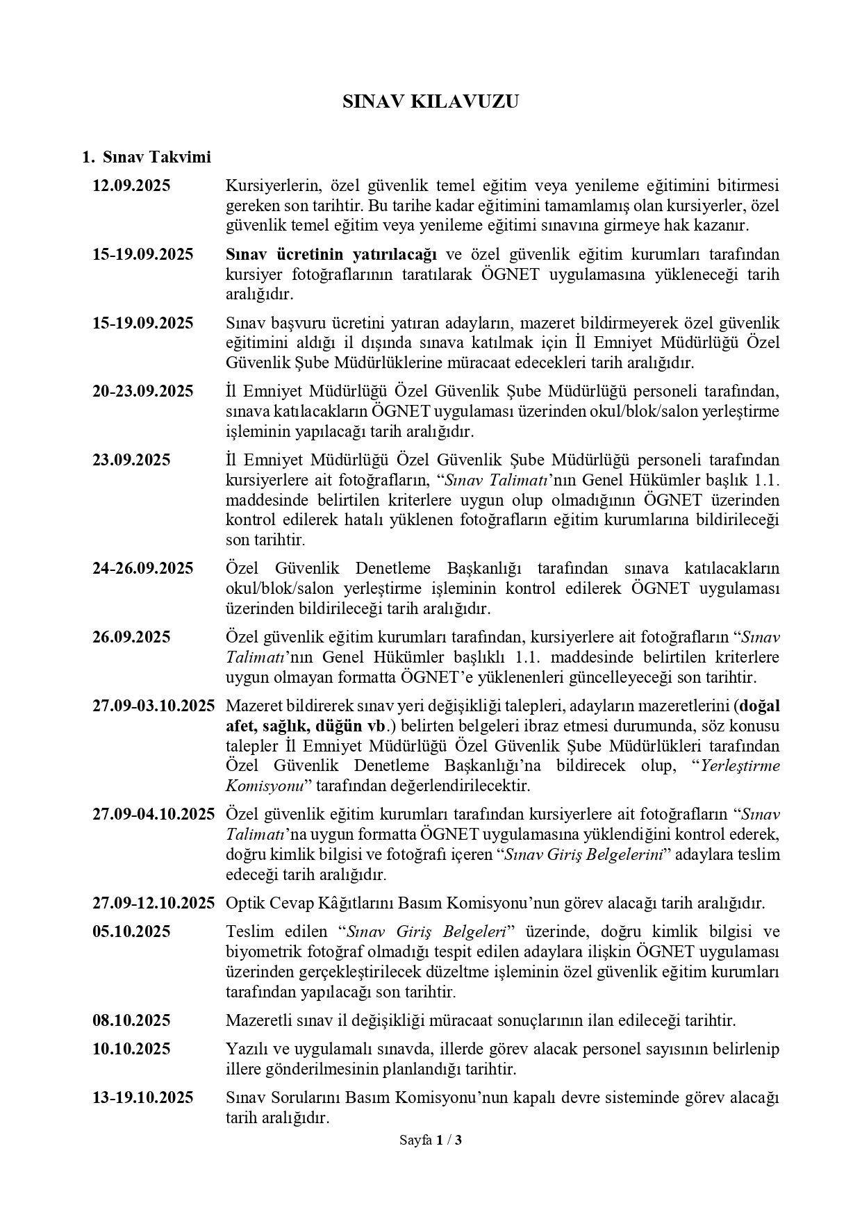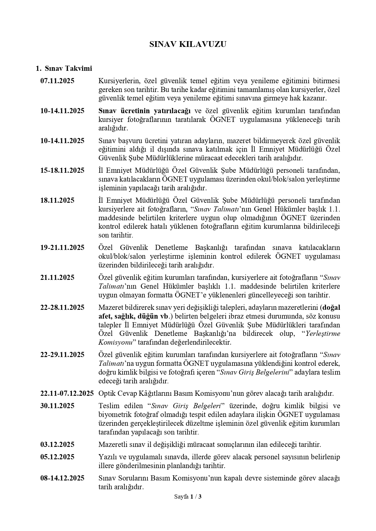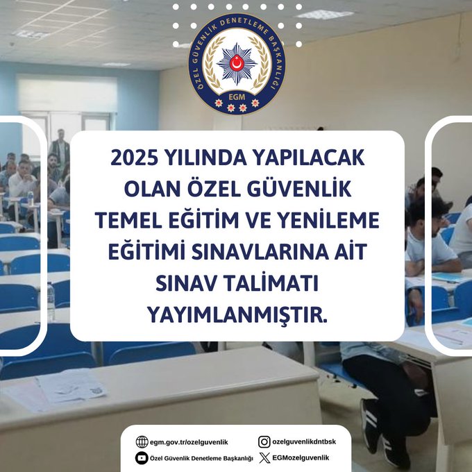 2025 YILI ÖZEL GÜVENLİK TEMEL EĞİTİM VE YENİLEME EĞİTİMİ SINAVLARINA AİT GENEL SINAV TALİMATINA ULAŞMAK İÇİN TIKLA