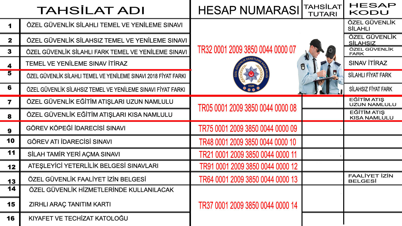 Özel Güvenlik Kimlik Kartı için Maliye Bakanlığı Vergi Dairesinin 9103 No’lu hesabına 2025 yılı için 6828,00 TL. ücret yatırılmaktadır.