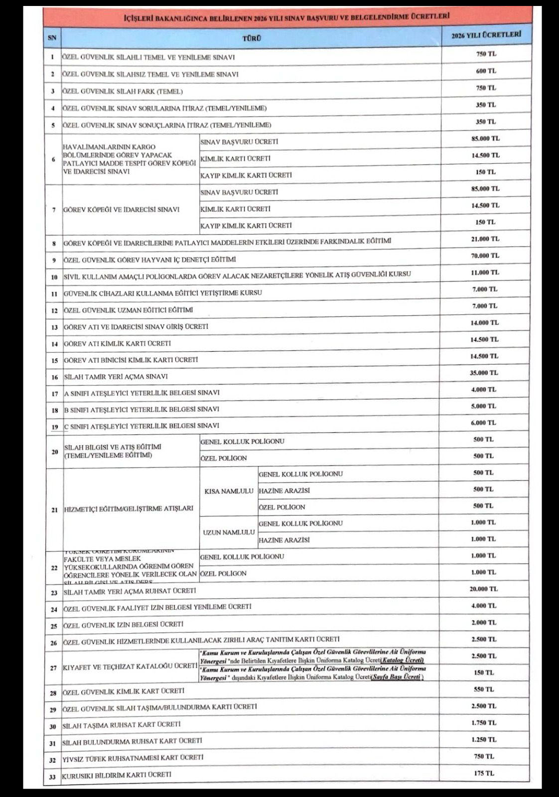 ÖZEL GÜVENLİK SİLAH TAŞIMA/BULUNDURMA KARTI ÜCRETİ